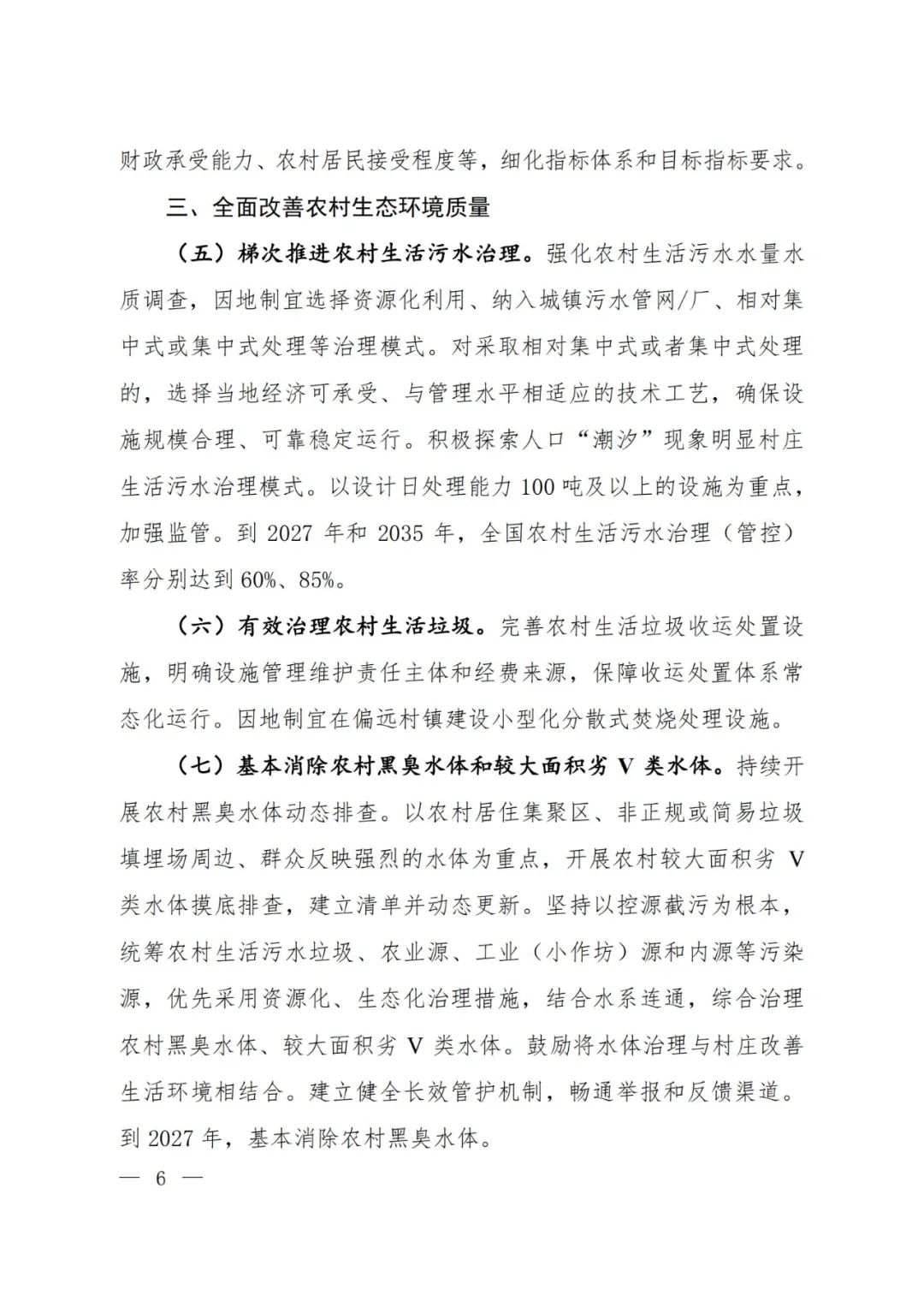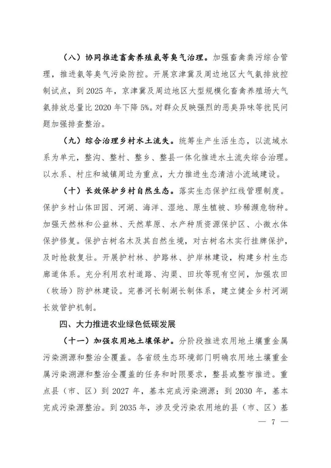 全面改善農(nóng)村生態(tài)環(huán)境質(zhì)量。梯次推進(jìn)農(nóng)村生活污水治理,有效治理農(nóng)村生活垃圾,基本消除農(nóng)村黑臭水體和較大面積劣Ⅴ類水體。協(xié)同推進(jìn)畜禽養(yǎng)殖氨等臭氣治理,對(duì)群眾反映強(qiáng)烈的惡臭異味等擾民問(wèn)題加強(qiáng)排查整治。綜合治理鄉(xiāng)村水土流失,大力推進(jìn)生態(tài)清潔小流域建設(shè)。長(zhǎng)效保護(hù)鄉(xiāng)村自然生態(tài)。