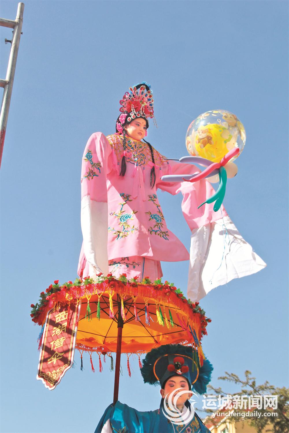 當(dāng)天,河津市僧樓鎮(zhèn)帶來的表演分為“河汾門下”“風(fēng)追大唐”“時(shí)代雄風(fēng)”“春和萬象”4個(gè)篇章,通過原創(chuàng)古風(fēng)舞蹈、武術(shù)、高蹺斗舞、轉(zhuǎn)花燈等多種表現(xiàn)形式,將傳統(tǒng)文化與現(xiàn)代藝術(shù)巧妙融合;河津市小梁鄉(xiāng)不甘示弱,馬拉鼓車、炫酷摩托車隊(duì)表演、花車舞獅、紙馬旱船、打花鼓等社火節(jié)目輪番上演。其中,馬家莊抬閣驚艷亮相,數(shù)米高的架子上,身著彩服保持固定姿勢的兒童賣萌搞怪,惹得大家捧腹大笑。