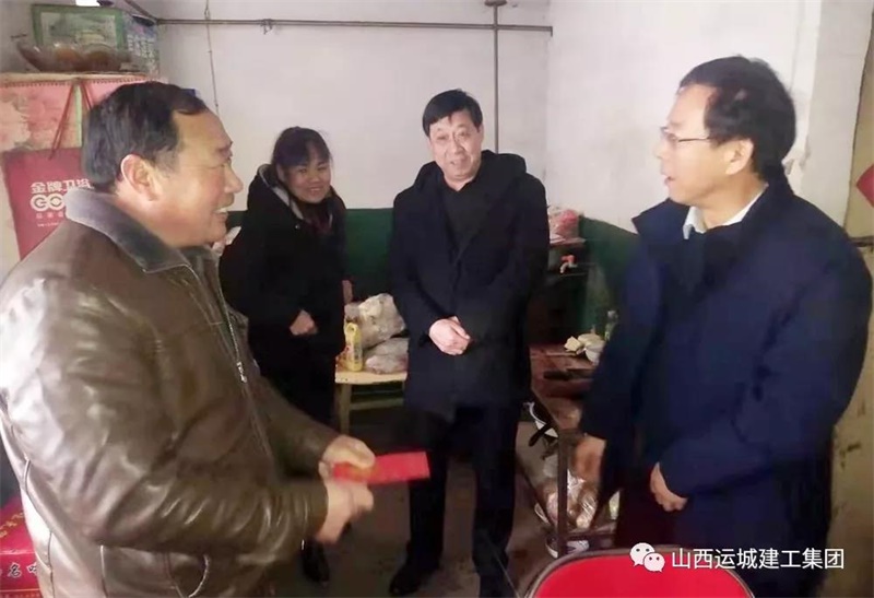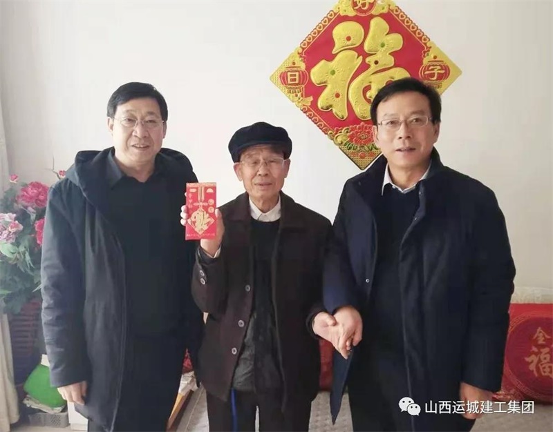 寒冬送暖,臘月傳情。在新春佳節(jié)來(lái)臨之際,運(yùn)城建工黨委班子心系離退休老黨員、老領(lǐng)導(dǎo)、老同志和困難職工,為使他們度過(guò)一個(gè)歡樂(lè)祥和的春節(jié),1月21日,受黨委書(shū)記牛正澤同志委托,公司董事長(zhǎng)王立平、黨委副書(shū)記侯占平、總經(jīng)理王哲波走訪慰問(wèn)離退休老黨員、老領(lǐng)導(dǎo)、老同志和困難職工,向他們致以新春的祝福和問(wèn)候。